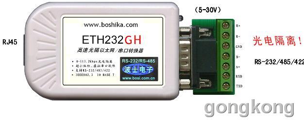 波仕ETH232系列微型以太網(wǎng)/串口轉(zhuǎn)換器秉承波仕轉(zhuǎn)換器的一貫特色,具有超小型的外形(80*23*47mm)、RS-232、RS-485、RS-422通用,可以虛擬成為本地COM串口(COM1-COM256)、無須修改已有的串口通信軟件。同時波仕贈送具有自主知識產(chǎn)權(quán)的通信源程序(VC++,VB、BC、DELPHI,可以嵌入用戶通信程序)以及擁有版權(quán)的以太網(wǎng)-串口影射程序。波仕ETH232GH、ETH232GL1和ETH232L1都是世界上最小的、也是使用最簡便的以太網(wǎng)/串口轉(zhuǎn)換器。 其中ETH232GH、ETH232GL1是帶光電隔離的以太網(wǎng)/串口轉(zhuǎn)換器,實(shí)現(xiàn)了以太網(wǎng)、電源、串口的三方隔離。 我們對國內(nèi)外多種以太網(wǎng)串口服務(wù)器進(jìn)行了比較試驗(yàn),ETH232系列是少數(shù)能夠成功用起來的產(chǎn)品之一,而且是最容易用起來的。專利產(chǎn)品,謹(jǐn)防假冒! 專利號:200630307752